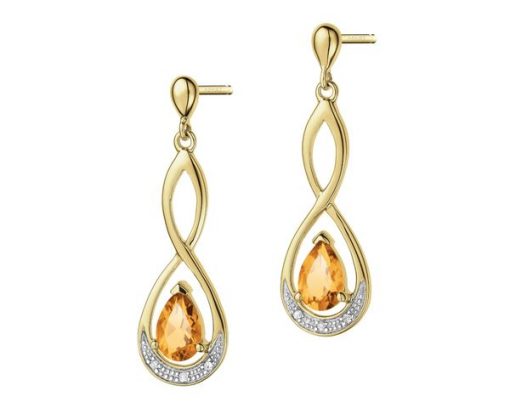 Kolczyki z żółtego złota z diamentami i cytrynami – próba 375 – 203.184. Żółte złoto rodowane