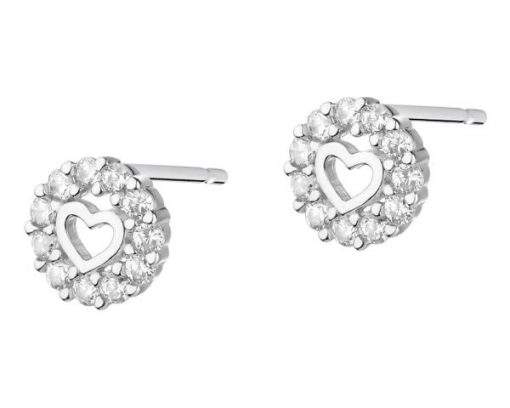 Kolczyki srebrne z cyrkoniami – serca – AP537-0020. Srebro rodowane