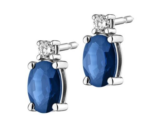 Kolczyki z białego złota z brylantami i szafirami – próba 750 – 103.849. Białe złoto rodowane