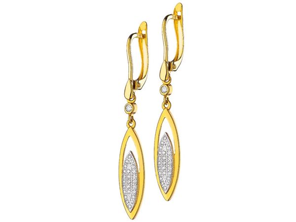 Złote kolczyki z cyrkoniami – K-435.01. Żółte złoto rodowane