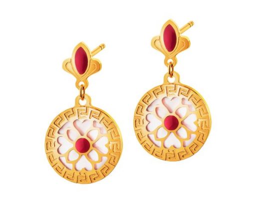 Złote kolczyki z masą perłową i emalią – AP535-4449. Żółte złoto