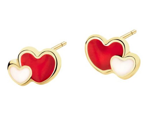 Złote kolczyki z emalią – serca – AP539-8719. Żółte złoto