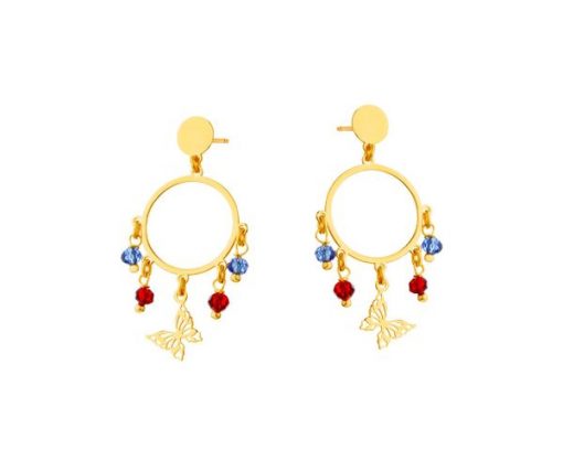Kolczyki srebrne ze szkłem – motyle – AP532-4973. Srebro pozłacane