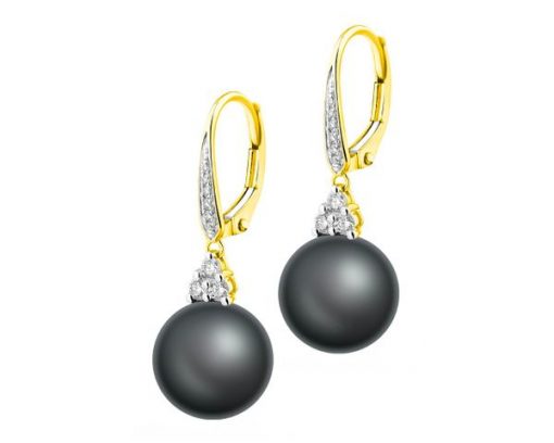 Kolczyki z żółtego złota z brylantami i perłami Tahiti – próba 585 – 109.325/T. Żółte złoto rodowane