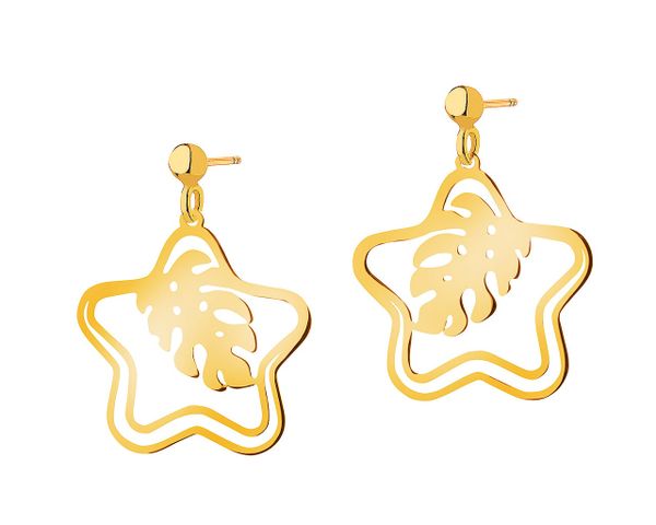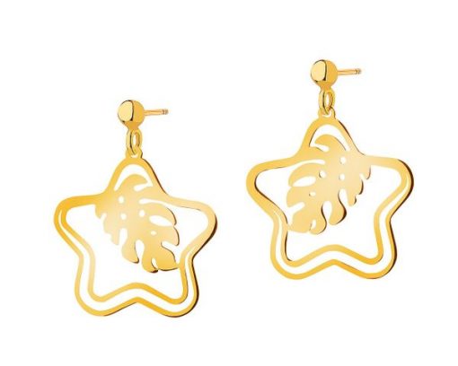Złote kolczyki – gwiazdy, liście monstery – AP535-5592. Żółte złoto