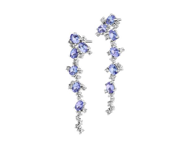 Kolczyki z białego złota z diamentami, tanzanitami i topazami białymi – próba 585