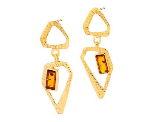 Kolczyki srebrne z bursztynem – AP535-5789. Srebro pozłacane