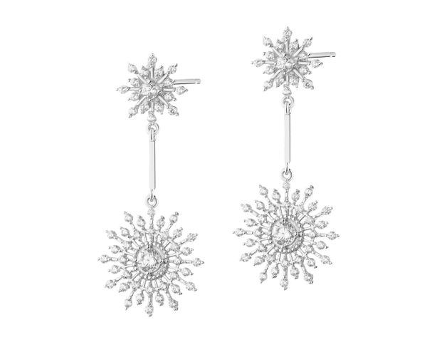 Kolczyki srebrne z cyrkoniami – śnieżynki – AP535-4491. Srebro rodowane