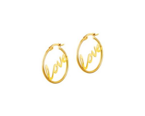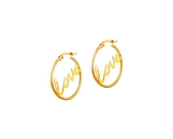 Złote kolczyki – koła, love – AP531-7625. Żółte złoto