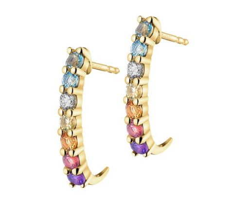 Kolczyki z żółtego złota z brylantami i kamieniami ozdobnymi – próba 375 – 110.842. Żółte złoto rodowane