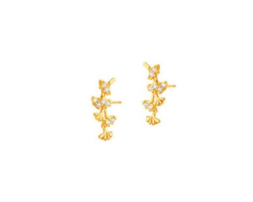 Złote kolczyki z cyrkoniami – miłorząb – AP533-4640. Żółte złoto