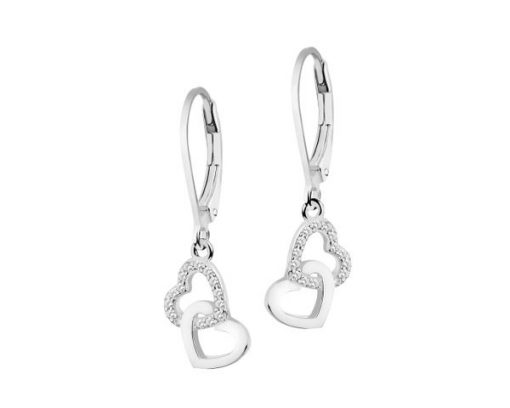 Kolczyki srebrne z cyrkoniami – serca – AP522-4384. Srebro rodowane