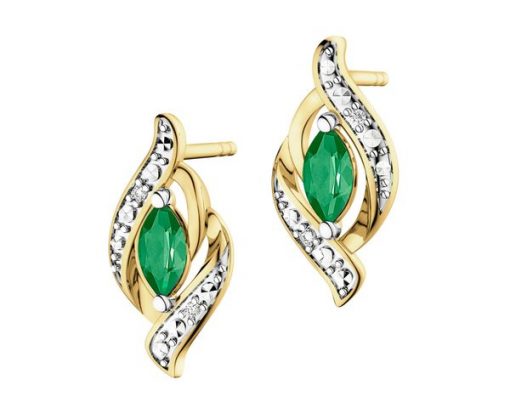 Kolczyki z żółtego złota z diamentami i szmaragdami – próba 585
