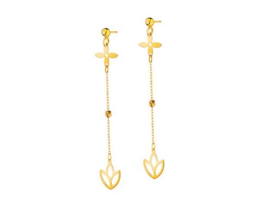 Złote kolczyki – kwiaty lotosu – AP534-0764. Żółte złoto