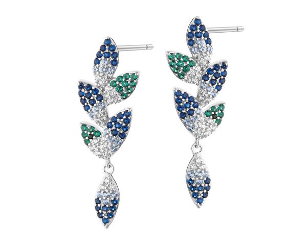 Kolczyki srebrne z cyrkoniami – liście – AP538-3252. Srebro rodowane