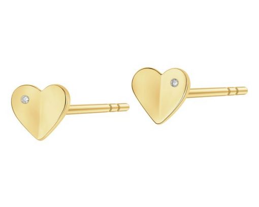 Kolczyki z żółtego złota z diamentami – serca – 0,005 ct – próba 585