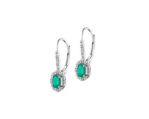 Kolczyki z białego złota z diamentami i szmaragdami – próba 585 – 109.420. Białe złoto rodowane