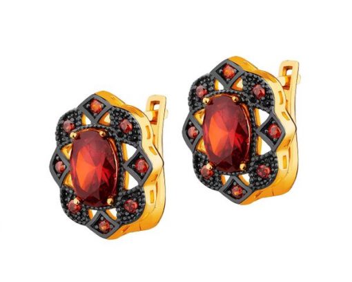 Złote kolczyki z cyrkoniami – AP537-1145. Żółte złoto, czarny rod