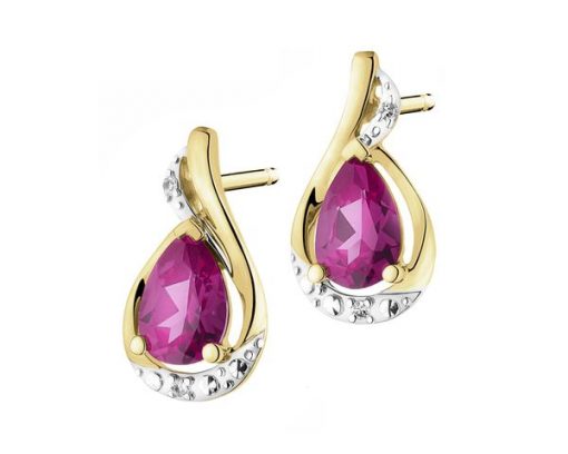 Kolczyki z żółtego złota z diamentami i rubinami syntetycznymi – próba 375