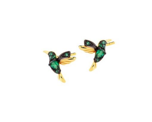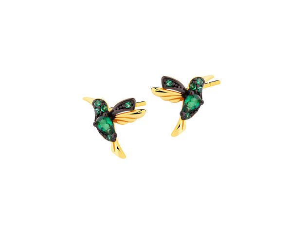 Kolczyki srebrne z cyrkoniami – kolibry – AP532-2553. Srebro pozłacane