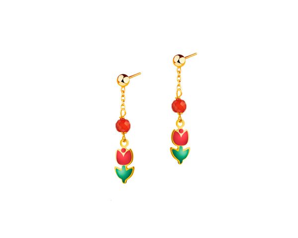 Złote kolczyki z emalią i szkłem szlifowanym – kwiaty – AP533-2996. Żółte złoto