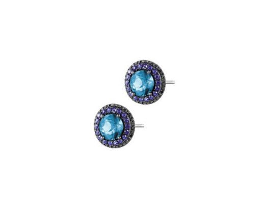 Kolczyki z białego złota z czarnymi diamentami, topazami London Blue i szafirami – próba 585