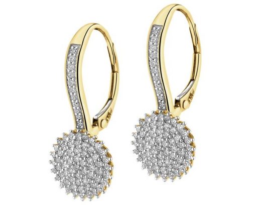 Kolczyki z żółtego złota z diamentami – 0,39 ct – próba 585 – 160.486. Żółte złoto rodowane