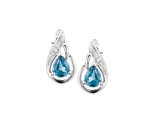 Kolczyki z białego złota z diamentami i topazami London Blue – próba 375 – 109.285. Białe złoto rodowane