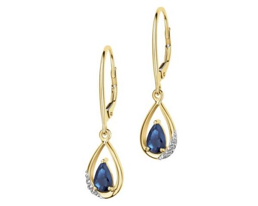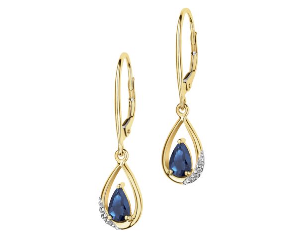 Kolczyki z żółtego złota z diamentami i szafirami – próba 585 – 229.106. Żółte złoto rodowane