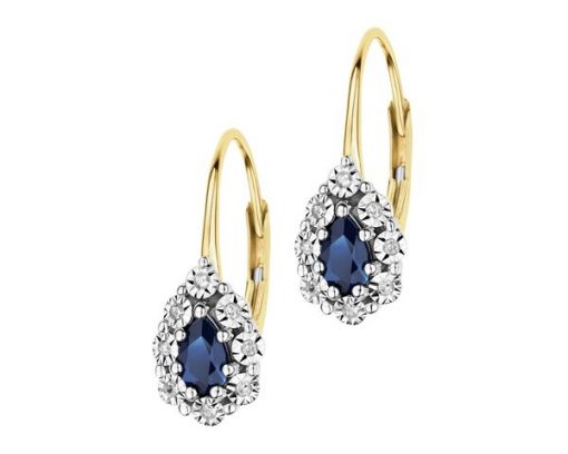 Kolczyki z żółtego i białego złota z diamentami i szafirami – próba 585