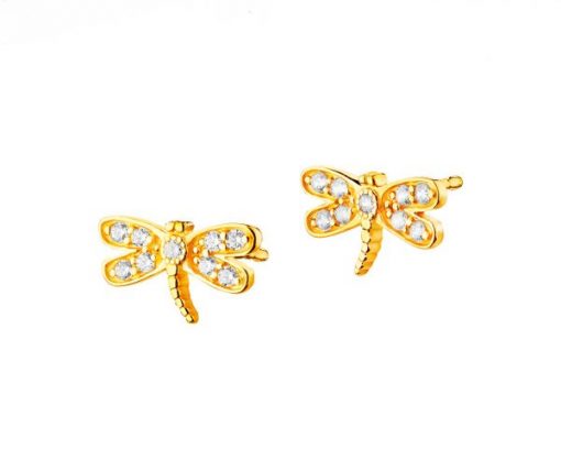 Złote kolczyki z cyrkoniami – ważki – K-520.01. Żółte złoto