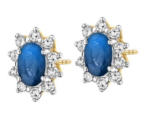 Kolczyki z żółtego złota z diamentami i szafirami – próba 585