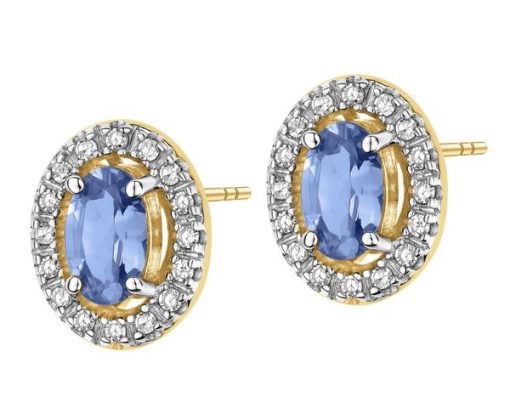 Kolczyki z żółtego złota z diamentami i tanzanitami – próba 585 – 203.217. Żółte złoto rodowane