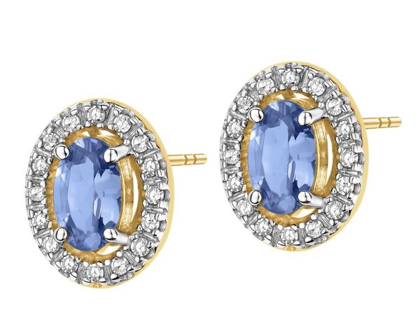 Kolczyki z żółtego złota z diamentami i tanzanitami – próba 585