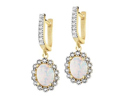Złote kolczyki z opalitami i cyrkoniami – AP540-7034. Żółte złoto rodowane