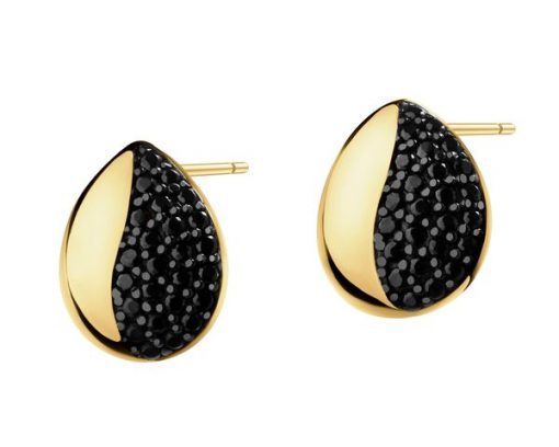 Złote kolczyki z cyrkoniami – łezki – AP540-5562. Żółte złoto, czarny rod