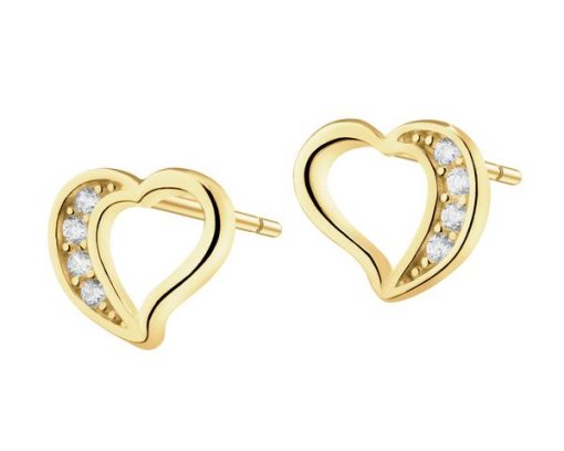 Złote kolczyki z cyrkoniami – serca