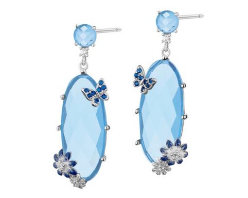Kolczyki srebrne z cyrkoniami, szlifowanym szkłem i emalią – motyle, kwiaty