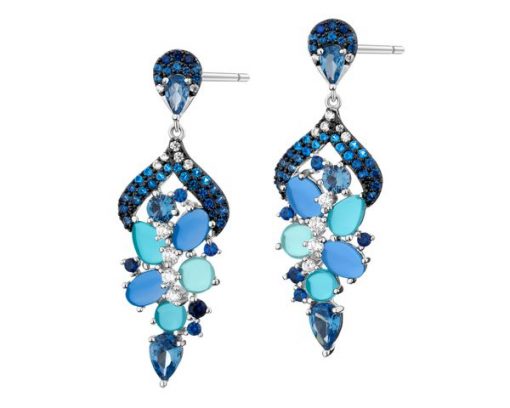 Kolczyki srebrne z cyrkoniami i szlifowanym szkłem – AP539-9993. Srebro rodowane, czarny rod