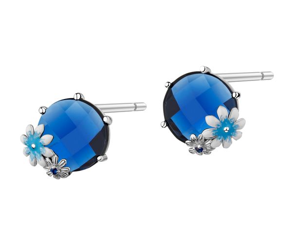 Kolczyki srebrne z cyrkoniami, szlifowanym szkłem i emalią – kwiaty – AP539-8243. Srebro rodowane