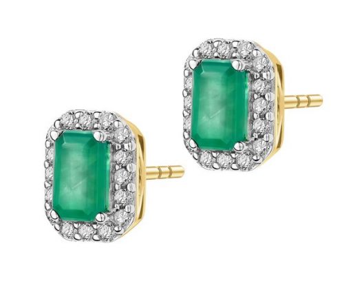 Kolczyki z żółtego złota z diamentami i szmaragdami – próba 585