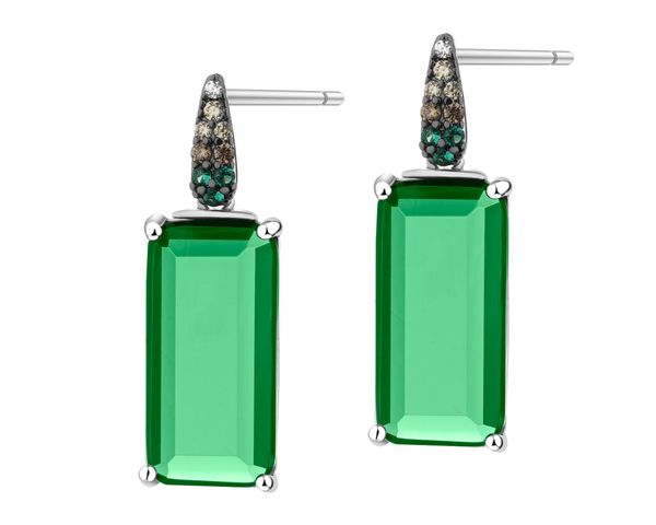 Kolczyki srebrne z cyrkoniami i szlifowanym szkłem