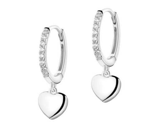 Kolczyki srebrne z cyrkoniami – serca, koła