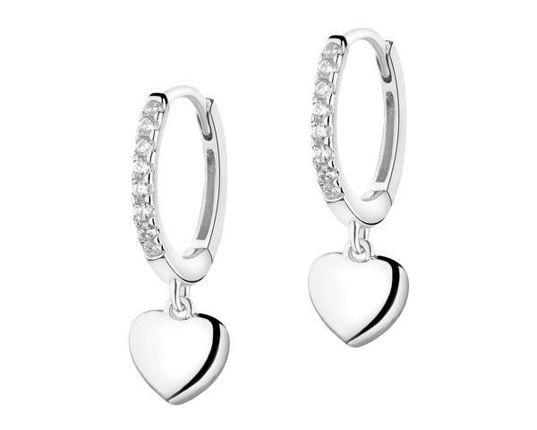 Kolczyki srebrne z cyrkoniami – serca, koła – AP540-5917. Srebro rodowane