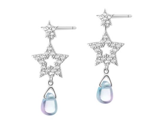 Kolczyki srebrne z cyrkoniami i szlifowanym szkłem – gwiazdy