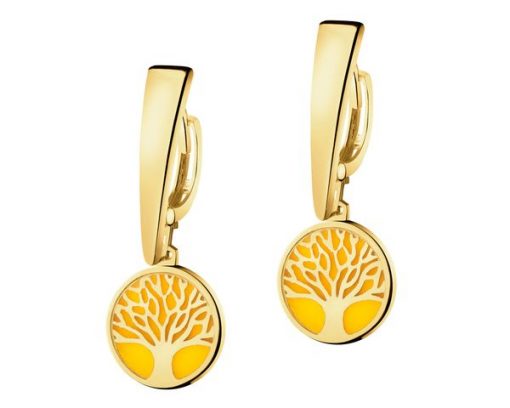 Złote kolczyki z emalią – drzewka – AP541-6123. Żółte złoto