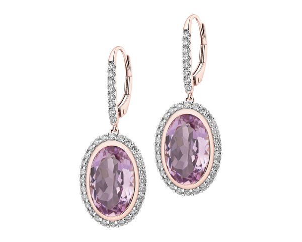 Kolczyki z różowego złota z brylantami i ametystami – próba 585 – 194.200. Różowe złoto rodowane