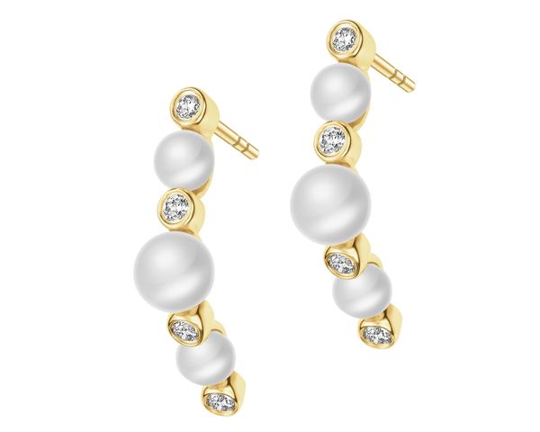 Kolczyki z żółtego złota z brylantami i perłami – próba 585 – 223.111. Żółte złoto
