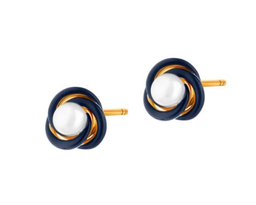 Złote kolczyki z perłami i emalią – AP534-8208. Żółte złoto