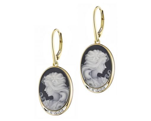 Kolczyki z żółtego złota z diamentami i agatami – kamea – próba 585
